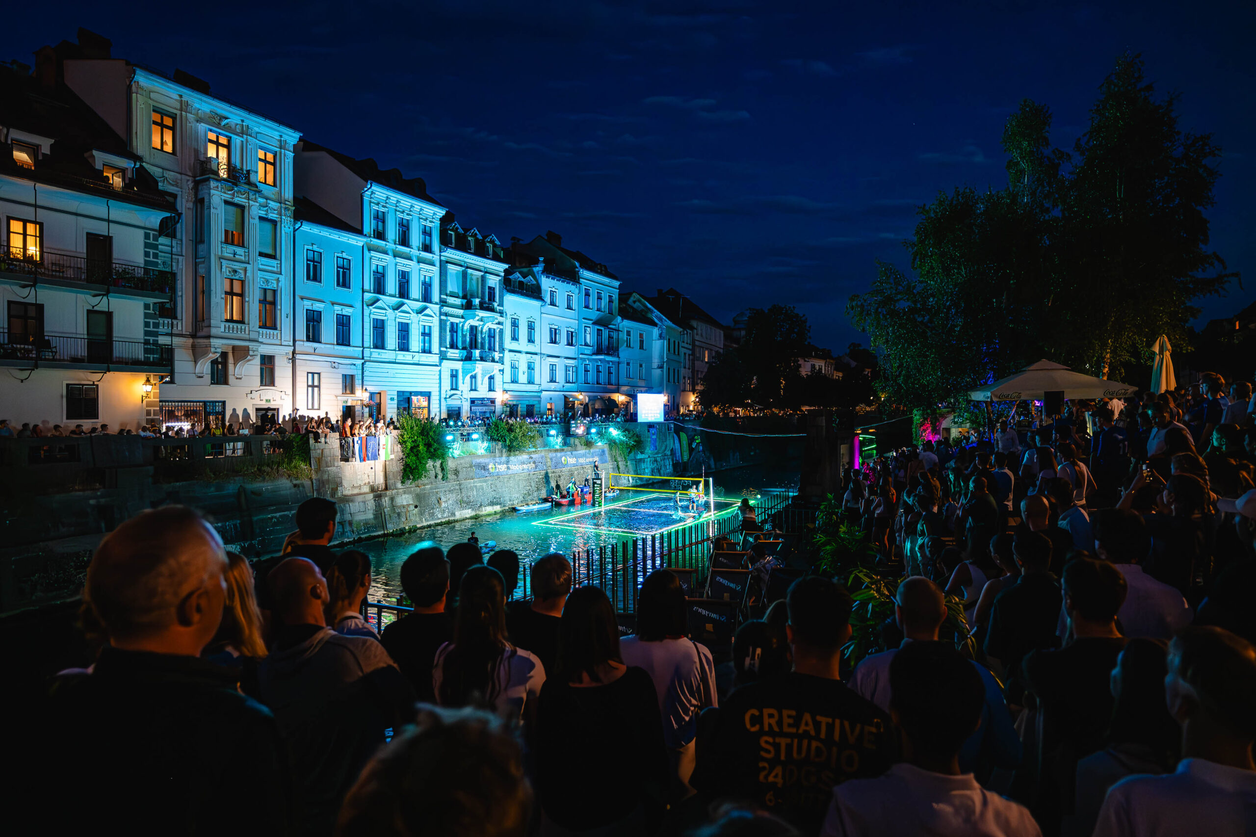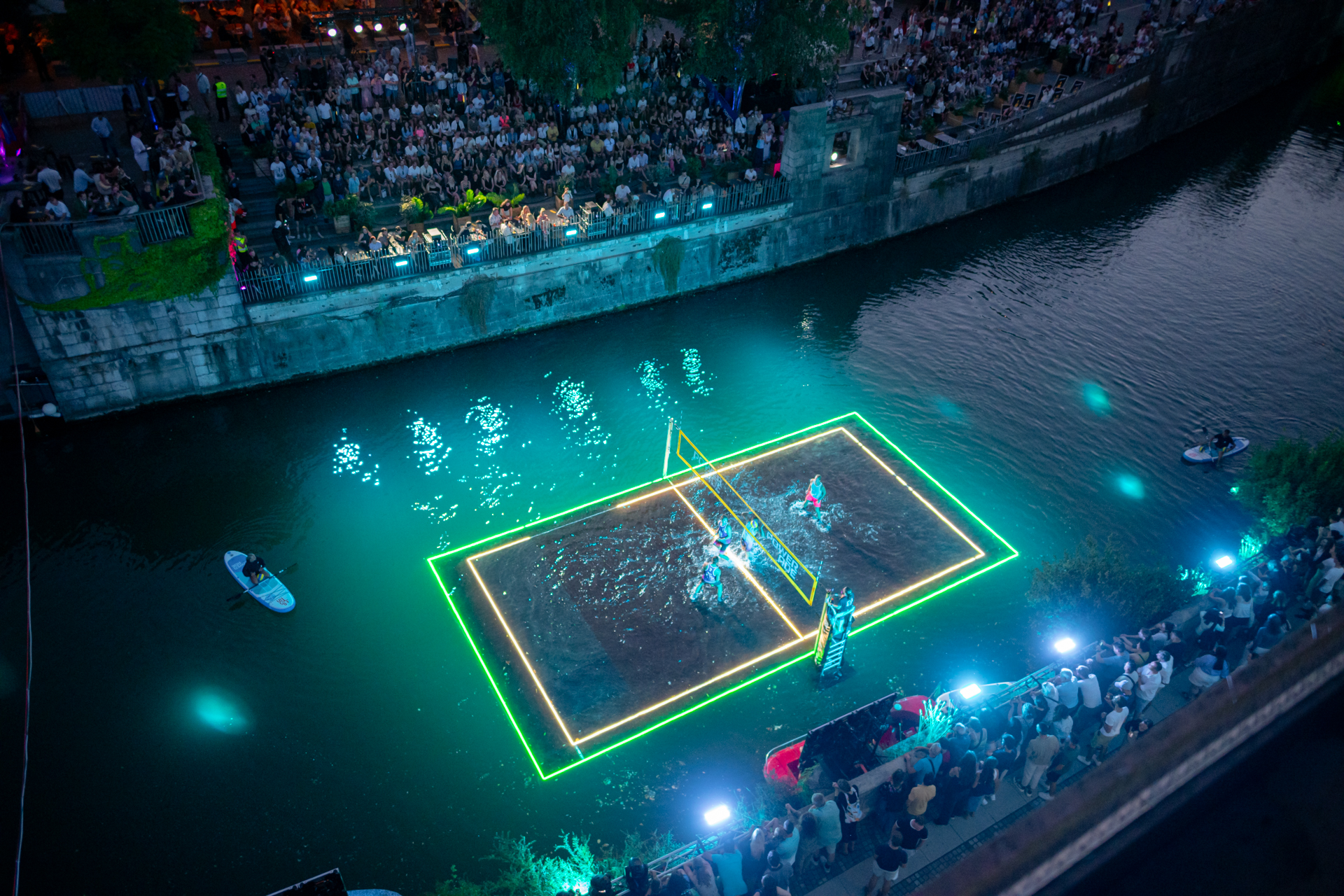 Floating court has even more in store for you that the magic of top athletes battling it out in the middle of the city. Stand in awe while the court transforms into spectacular stage of performers, surrounded with LED lights.